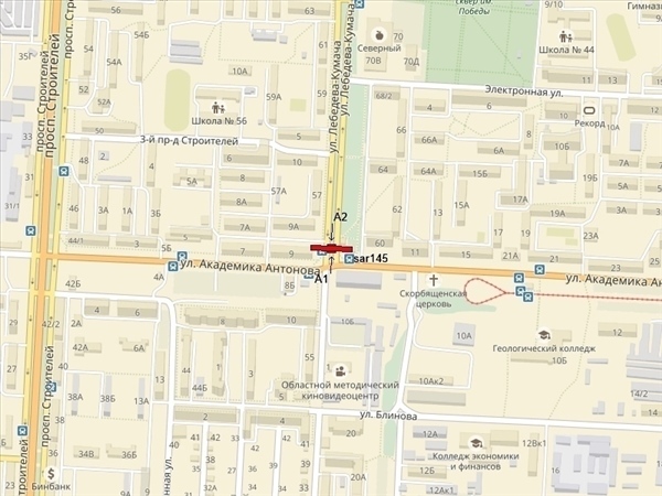 Лебедева-Кумача ул., пересечение с ул.Антонова, в районе ост."Котельная", разделительная полоса, сторона А1 - при движении к ул. Тархова, сторона А2 - к ул.Антонова
