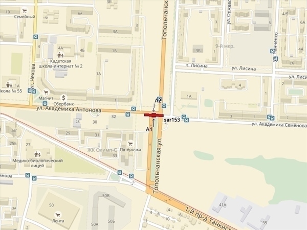 Топольчанская ул., пересечение с ул. Академика Антонова, в районе рынка "На Топольчанской", 500м до гипермаркета "Лента", разделительная полоса (сторона А1 - при движении из центра, сторона А2 - при движении в центр), позиция №3