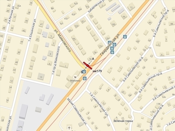 Гвардейская ул., 84/2, перед поворотом на ул.Маяковского, справа при движении из центра