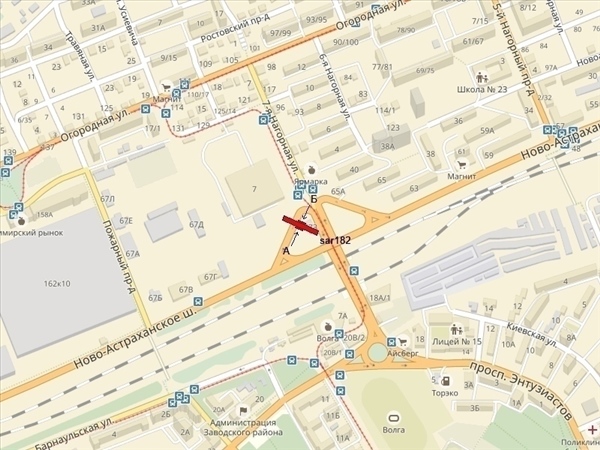 Ново-Астраханское шоссе, транспортная развязка с пр-том Энтузиастов и 7-й Нагорной ул., 800м до ТЦ"Оранжевый" и гипермаркета "Ашан", справа при движении от Пожарного пр-да