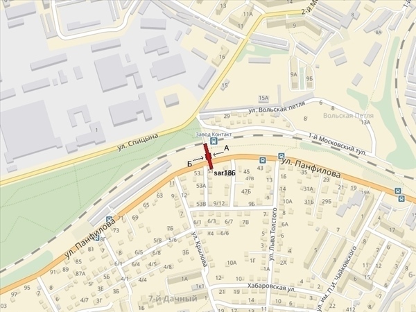 Панфилова ул., 100м до ул. Крылова, справа при движении из центра
