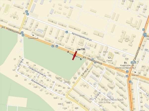 Навашина ул., напротив д.12, 400м до ул.Танкистов, спрва при движении от ул.Шехурдина, к аэропорту и гипермаркету "Метро"