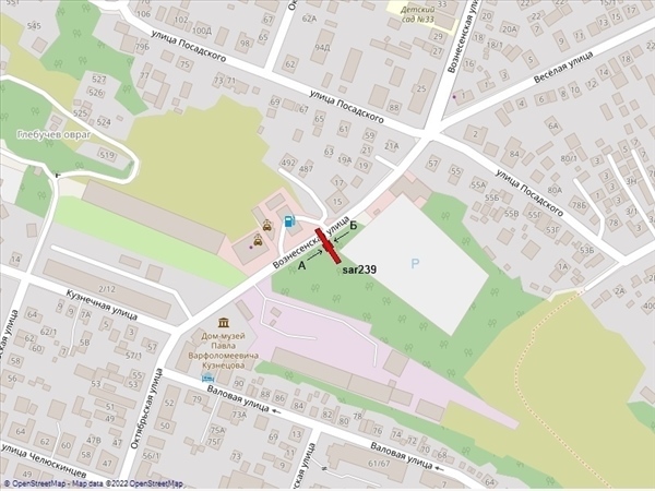 Октябрьская ул., напротив д.59, АЗС "СарОйл", справа при движении к Большой Горной ул.